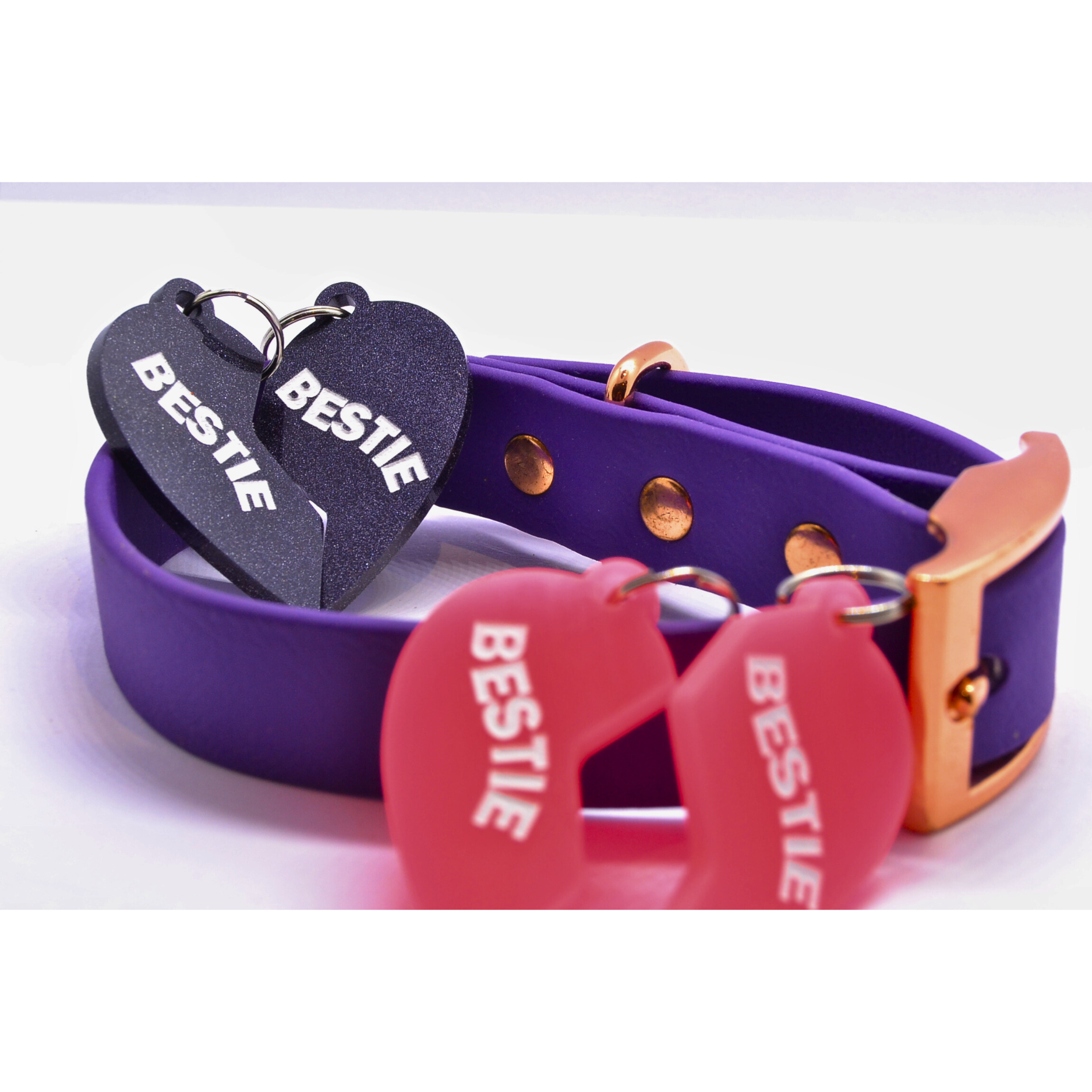 Two tags. One bond. The Besties tag is a split-heart design made for inseparable duos—whether it's your pup and their dog park partner-in-crime, or the ultimate dog-human friendship. Each half of the heart becomes its own ID tag, so both besties can carry a piece of the love wherever they go.