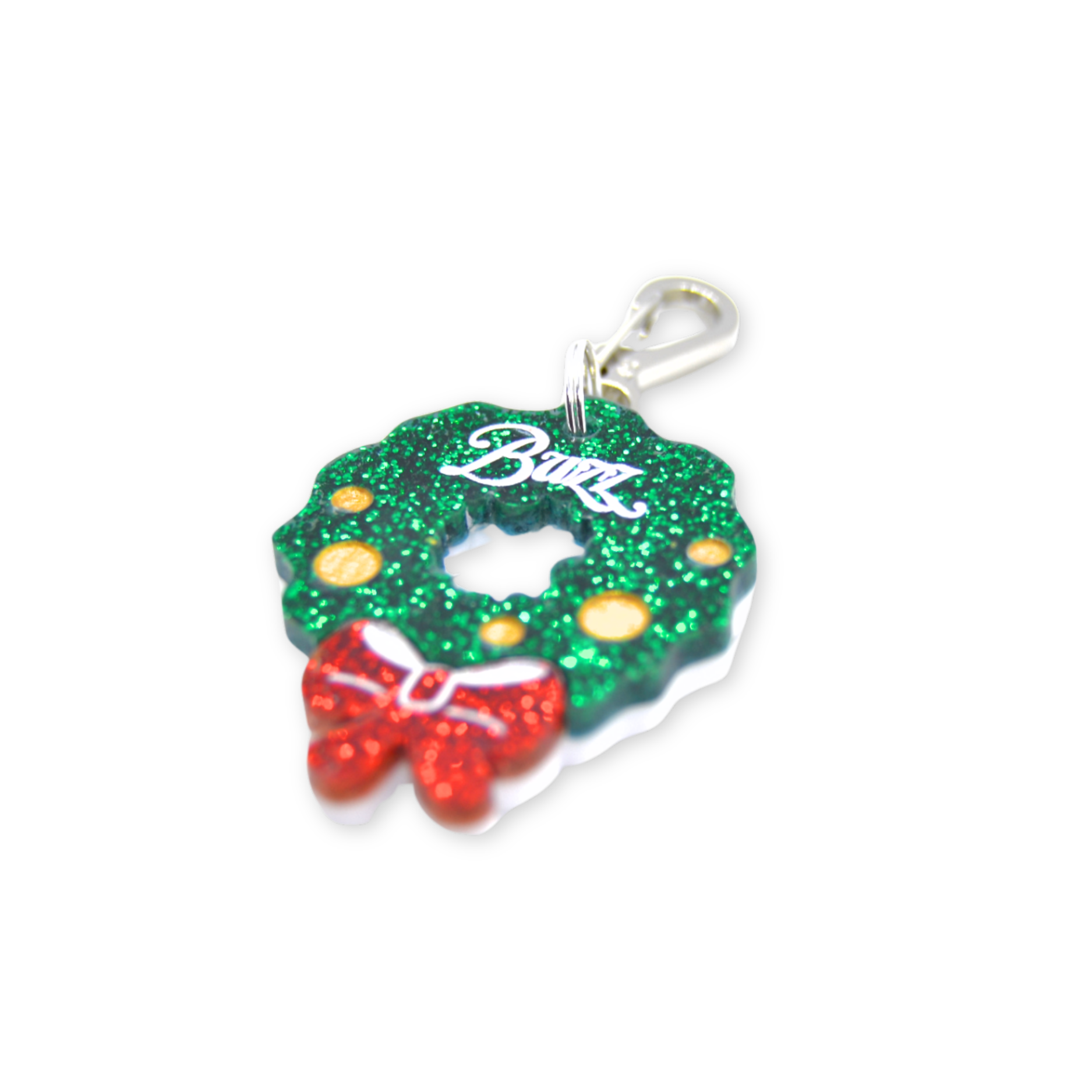 Dress up your pup with a festive touch with our Christmas Wreath Pet ID Tag. This adorable accessory not only adds a stylish flair to your furry friend's collar but also helps keep them safe with their identification. A must-have for all holiday-loving pet owners!