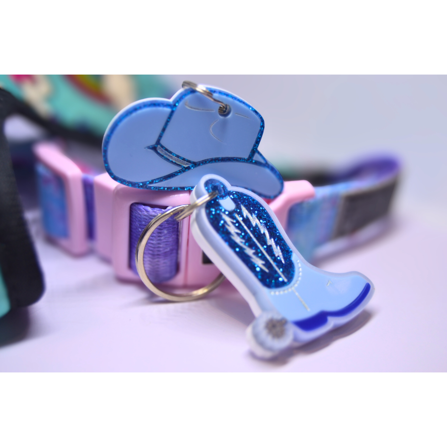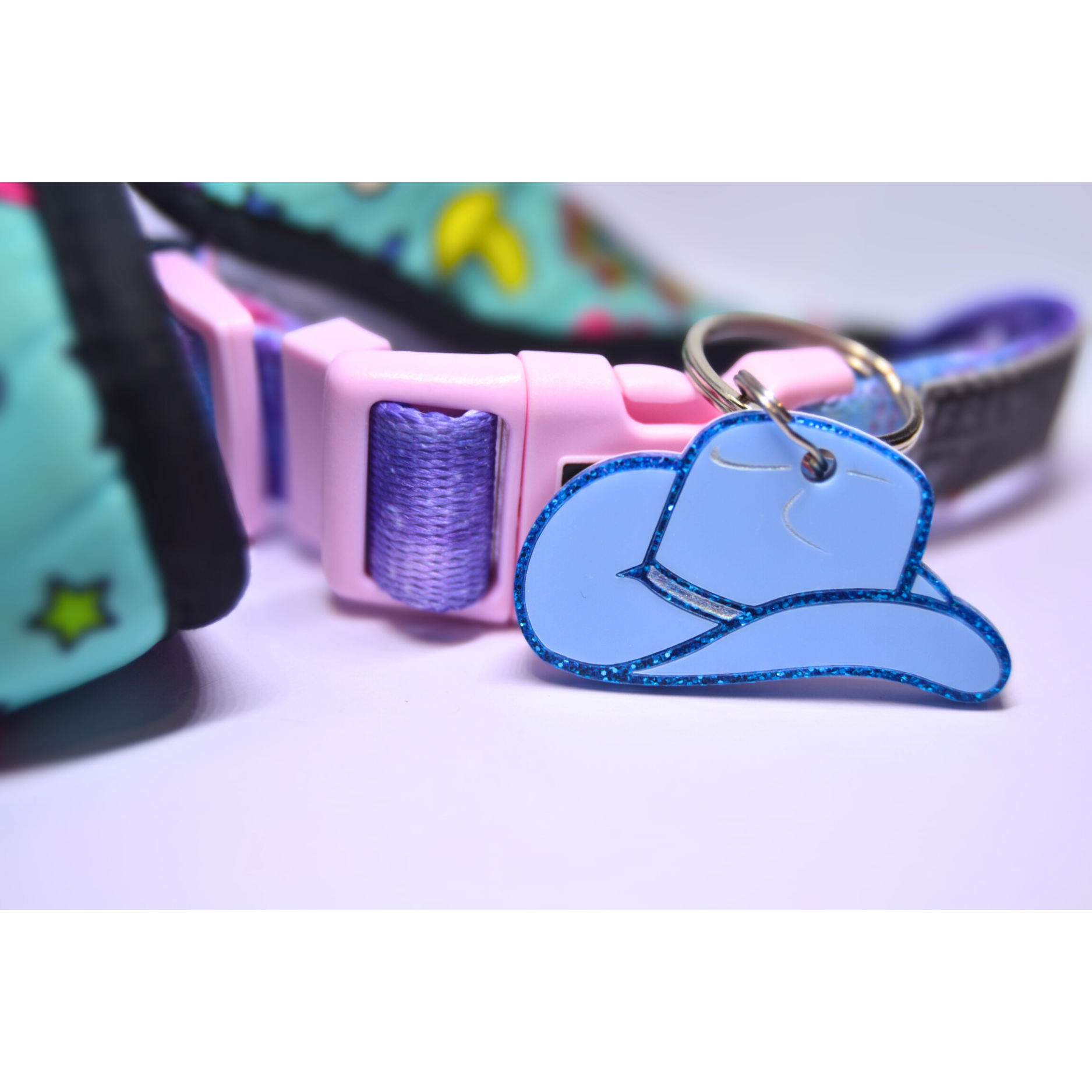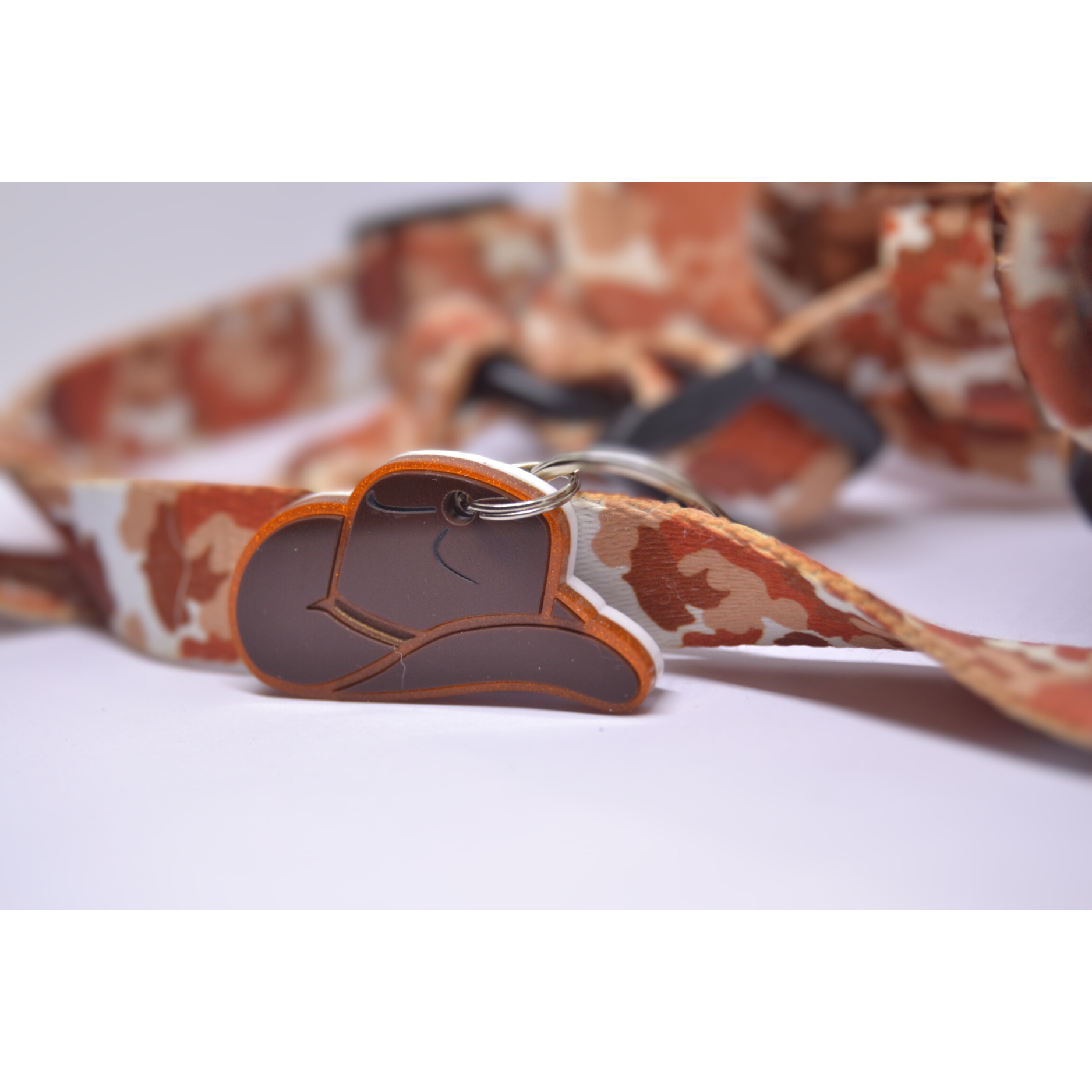 The Hats Off, Hound tag brings that wild-west flair to your dog’s daily strut. Shaped like a classic rustler cowboy hat and layered in warm, desert tones, it’s perfect for the four-legged outlaw who always steals the spotlight (and your snacks).